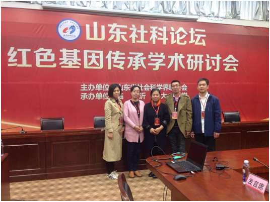 2018年10月13日-14日,受临沂大学太阳集团tyc539的邀请,我校思政部副主任薛金莲教授率《纲要》课教师共5人在临沂大学参加了由山东省社会科学界联合会主办,临沂大学承办的“山东社科论坛——红色基因传承学术研讨会”。
