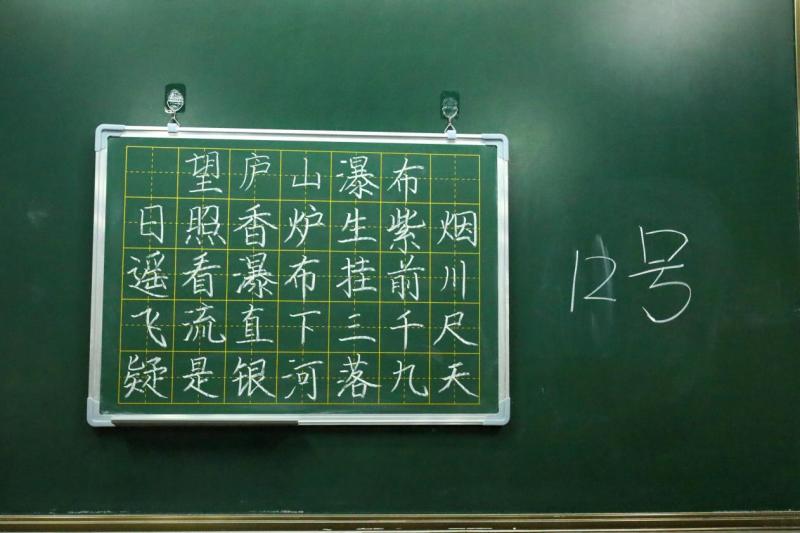 “一手好字,既是教师的形象标识,更是教师的基本功,希望通过本次竞赛我系学生三笔字技能更上一层楼”,在系党总支书记赵东旭老师的开场词中,本次竞赛拉开了帷幕。三寸粉笔,点点“白雪”,一首《望庐山瀑布》在不同的人的笔下体现出了不同的风格,台上同学的书写引来台下观众连连称赞,纷纷拿出手机拍照学习。待所有粉笔组竞赛完成后,选手和评委移步到系实训室进行毛笔字现场比赛和钢笔字作品评分。书法博士刘亚丽老师从书写规范、字的间架、字形对钢笔字进行了一一点评,从运笔、字的结构、字形、落款等对毛笔字进行了详细点评,毛笔字组赵雅荣同学以其运笔稳重、结构美观、书写规范获得老师们的一致好评。在激烈的角逐后,赵雅荣同学获得粉笔字组、毛笔字组一等奖,蔺红玉同学获钢笔字组一等奖。其余15名同学分获各组别二等奖和三等奖。