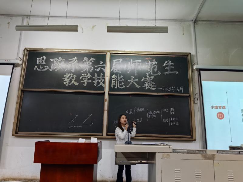 本次比赛的成功举办,为我系学子提供了展示教学风采和能力的舞台,充分展现了我系师范生良好的精神风貌和未来的教师风采,为学生进一步运用习近平新时代中国特色社会主义思想的立场观点方法分析和解决问题、通过比赛和专业实践发现问题并提升思维能力和实践能力打下了坚实的基础。(董贺供稿)