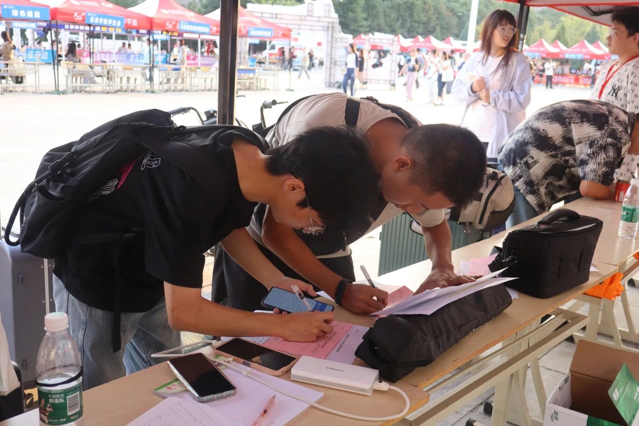 报到现场,各项流程有条不紊地进行着。志愿者们分工明确,按照网络注册流程报到、核验新生材料、发放住宿通知单的顺序,一步步引导新生快速、顺利地完成报到手续。