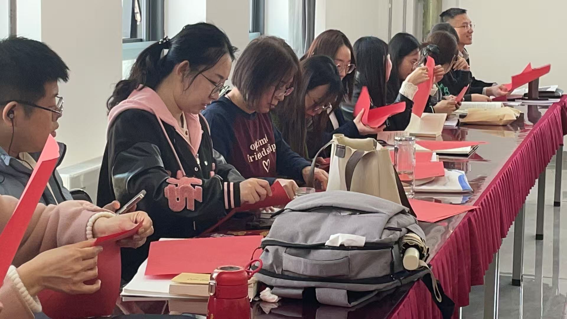 为庆祝第115个“三八”国际劳动妇女节,丰富女教职工的文化生活,太阳集团tyc539分工会于3月6日下午在会议室举办了一场别开生面的传承优秀传统文化活动——剪纸DIY活动。此次活动吸引了众多女教职工积极参与,现场气氛热烈。