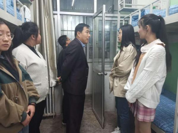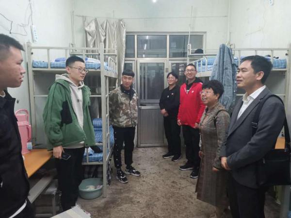 晚上19时,思政系党总支书记武瑞荣、主任翟翠玲、副书记宫东红、副主任康小兵一行在新生班主任高晶晶、王俊萍、李小旭、王丽和学长辅导员的陪同下,走进新生寝室,亲切看望各位新同学。系里老师们就住宿情况、饮食习惯、学业规划等问题与新生们面对面交谈,及时了解他们的实际需求,送去系里对大家的慰问和关心,让新同学感受到思政系大家庭的温暖。