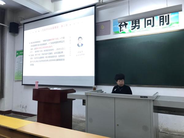 翟老师首先阐述了《习近平谈治国理政》第三卷的出版背景,从“两个大局”的角度出发,强调要站在世界高度,用国际眼光深刻理解这本书。关于《习近平谈治国理政》第三卷的主要内容,翟老师分别从阐释中国共产党人的初心和使命,增强忧患意识、防范化解风险挑战和完善和发展我国国家制度和治理体系三个方面做了阐释。在此基础上,翟老师就第三卷论述了以马克思主义为指导的重要性,乡村振兴的实施和战略意义、贯彻新时代党的组织路线的重要性等几大创新点进行了详细论述。翟老师强调《习近平谈治国理政》第三卷集中体现出马克思主义中国化的最新理论成果,既是全面系统反映习近平新时代中国特色社会主义思想的权威读本,又是认识和理解“中国之治”的“思想之门”,具有重要的理论价值和实践意义。她号召全体教师要真情实感读原著,真心实意学原文,真下功夫悟原理,学深悟透《习近平谈治国理政》第三卷,深入领会掌握习近平新时代中国特色社会主义思想的科学体系,进一步增强学思想、悟思想、用思想的自觉性和坚定性。