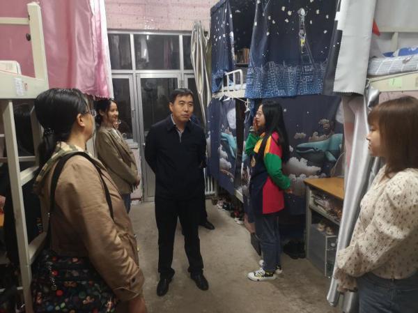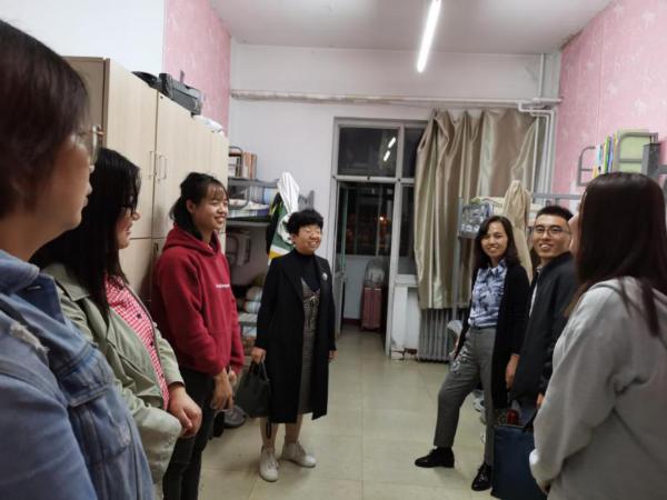 金秋送爽,丹桂飘香,在我国传统节日——中秋即将到来之际,9月30日19时30分,思政系书记武瑞荣、主任翟翠玲、副书记宫东红、副主任康小兵、分团委书记李鸿凯,在辅导员高晶晶、李小旭及班主任陈海霞、陈爱爱、王俊萍、王丽的陪同下,深入学生宿舍慰问思政系学子,提前向他们送去系部和老师们的关怀和温暖及中秋祝福和问候。