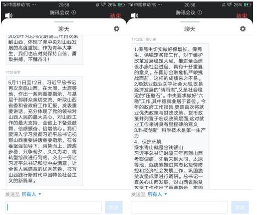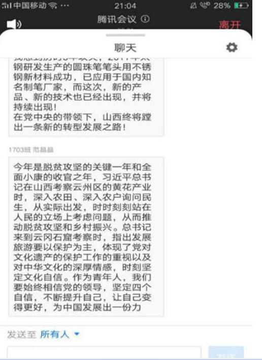 同学们看到了党中央对山西省的深切关怀,看到了保护与开发相结合的文化遗产旅游业,看到了“莫道农家无宝玉,遍地黄花是金针”的“小黄花大产业”,看到了古晋阳“泛舟船兮济汾河,横中流兮扬素波”的晚渡美景,看到了能源革命综合改革的新面貌,更看到了山西省脱贫致富的美好未来。同学感触良多,积极分享自己的内心体会。