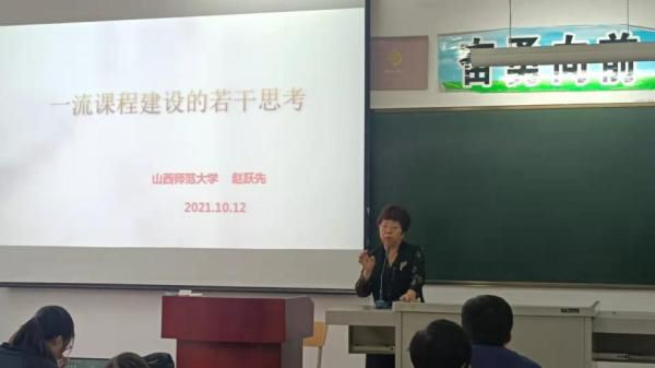 为深入贯彻落实我校关于课程大纲修订工作的精神,推动习近平新时代中国特色社会主义思想“三进”工作,进一步加强思政部(系)全体教师对课程建设重要性的认识和思考,我系于2021年10月12日在教学楼二区511教室举行思政课教师课程建设专项培训活动。山西师范大学赵跃先教授应邀做了题为“一流课程建设的若干思考”的专题讲座,思政部(系)主任翟翠玲主持会议,思政(部)系领导班子成员及全体思政教师参加了会议。