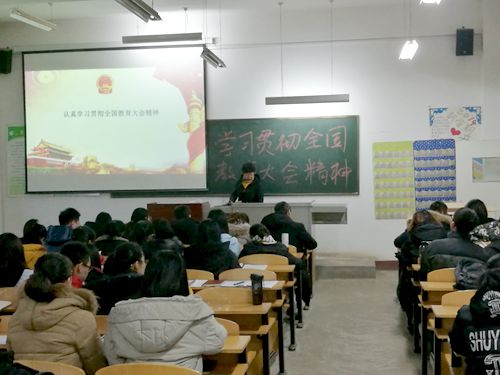 为进一步在我系党员同志中贯彻落实全国教育大会精神,引导党员争当符合时代要求的好老师,2018年12月18日下午,思政部(系)党总支在2区501教室举行“学习贯彻全国教育大会精神,争当符合时代要求的好老师——全国教育大会知识应知应会知识竞赛”主题党日活动。党总支书记贾友平,主任翟翠玲以及全体师生党员参与了此次活动