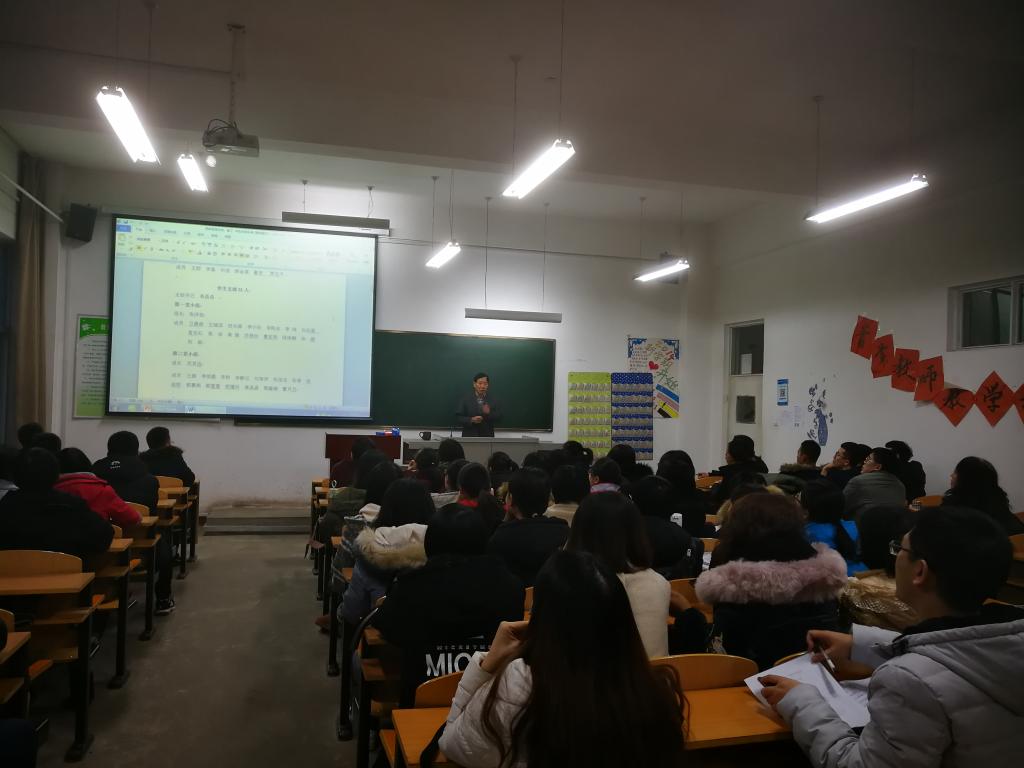 2018年12月4日下午,思政系党总支书记贾友平同志以《中国共产党支部工作条例(试行)》为主要内容,在2区501教室为思政系全体教工党员和学生党员讲了一堂既深刻又生动的党课。