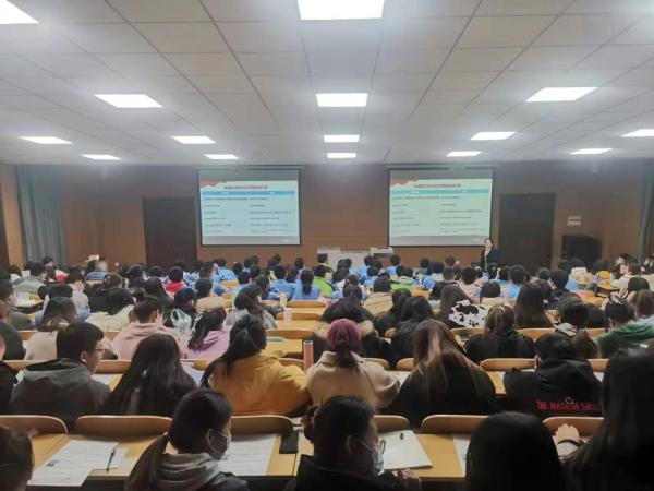为全面提升思想政治教育专业学生对本学科教学理论知识的实践能力,2021年12月7日下午,思政部2019级全体学生(大三)160多人,在樊学艺、强娇娇两位老师带领下,在附属高级中学观摩了高中政治组郭瑞妮老师的一整节公开展示课。