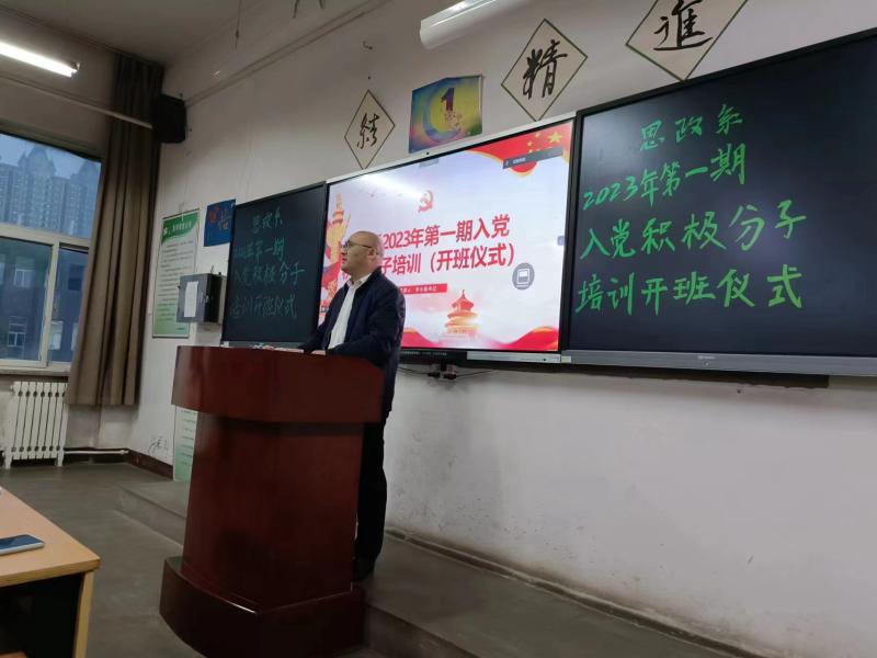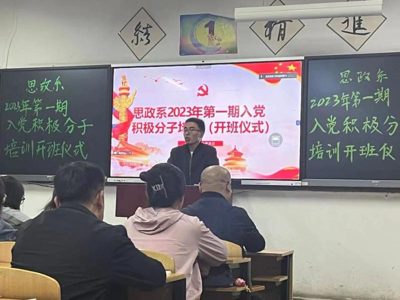 为深入学习贯彻党的二十大、二十届二中全会精神,进一步加强对入党积极分子的培养和教育,确保发展新党员的质量,保持党组织的先进性和纯洁性,提高党组织的战斗力,思政系党总支于2023年4月14日晚在2A-504举行2023学年第一期入党积极分子培训开班仪式。思政系党总支书记赵东旭出席开班仪式,全体参训学员参加。开班仪式由学生支部书记李小旭主持。
