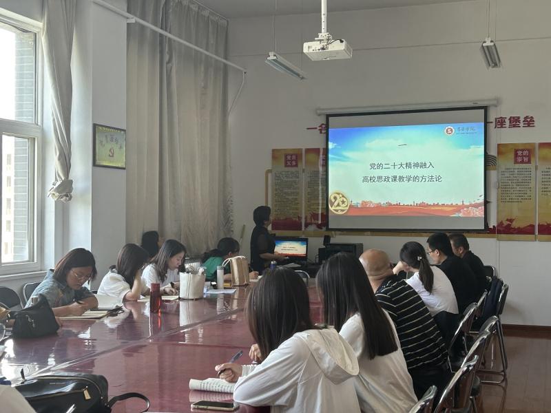 为深入开展学习贯彻习近平新时代中国特色社会主义思想主题教育,深入学习宣传贯彻党的二十大精神,推动党的二十大精神进一步融入思政课教学,6月13日下午,思政系主任翟翠玲教授为全体思政课教师讲授题为《党的二十大精神融入高校思政课教学的三点思考》的主题教育专题党课。