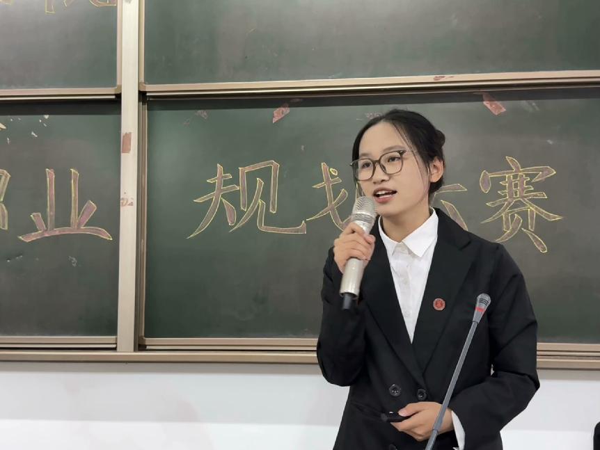 成长赛道六位选手满怀憧憬与自信,依次登台展示他们精心绘制的职业蓝图。王杰同学在成长赛道中表现卓越,她视野开阔、条理清晰,立志在教育领域深耕,展现出了强大的学术抱负与坚韧的钻研精神。就业赛道的选手以更加务实的态度和对职场的精准认知,呈现出各具特色的职业规划方案。其中,王司宇同学凭借丰富的实习经历与对行业动态的敏锐洞察,对职业晋升路径进行了详细规划。
