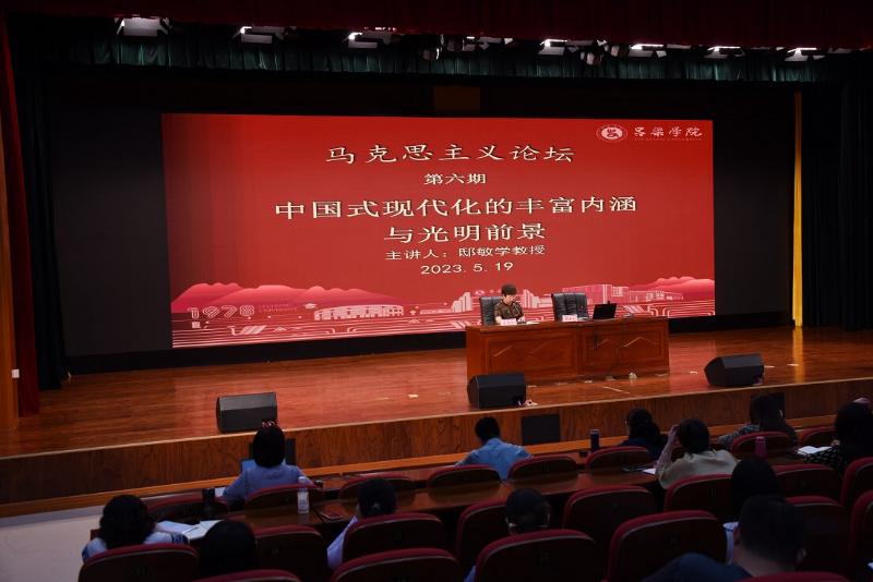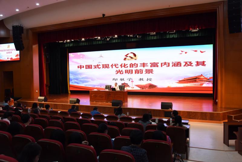 邸敏学教授作了《中国式现代化的丰富内涵与光明前景》的学术报告,他从中国式现代化的历史逻辑出发,阐释了中国式现代化的科学内涵和中国特色,论述了以中国式现代化全面推进中华民族伟大复兴的光明前景。邸敏学教授强调中国式现代化既具有现代化的共同特征,又具有中国特色,符合中国实际。